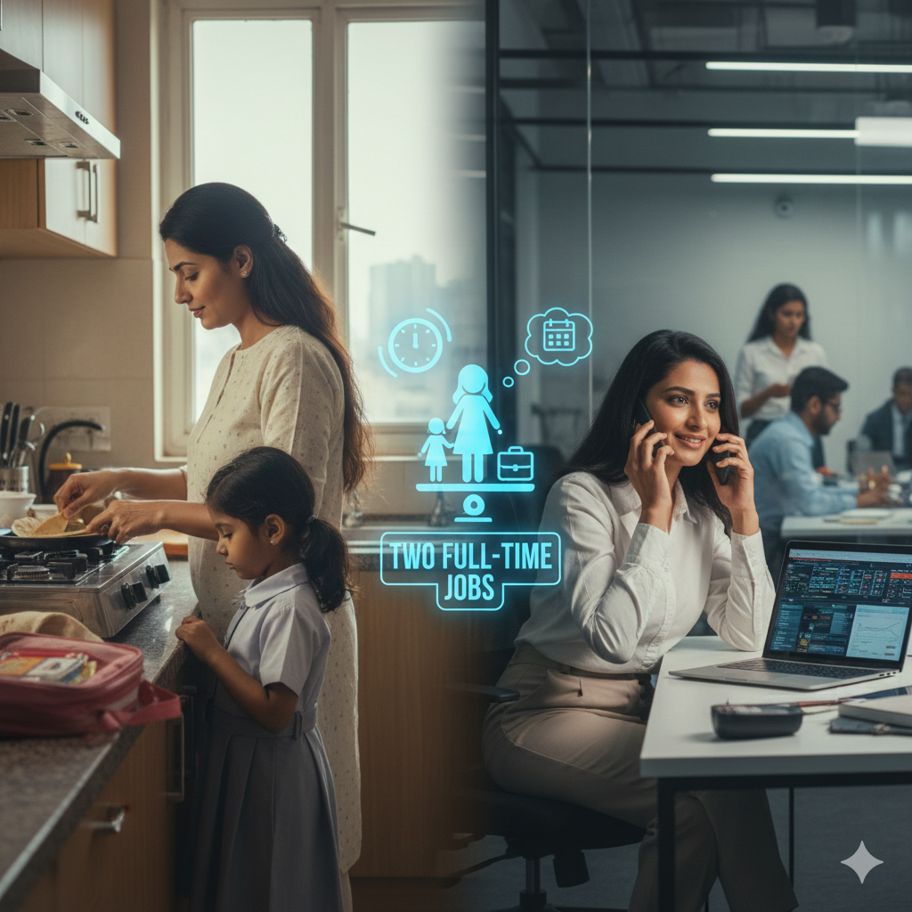 Sneha, a marketing professional in India, starts her day at 5:30 AM. She prepares breakfast, gets her 5-year-old ready for school, and battles traffic to reach her office by 9 AM. On a typical day, Sneha juggles client meetings and project deadlines alongside quick check-ins with her child’s caregiver. “I sometimes feel like I have two full-time jobs,” she laughs, referring to her role in the office and at home. The pressure is real – from family members who expect her to be home earlier, to the guilt she feels for occasionally missing a school event.