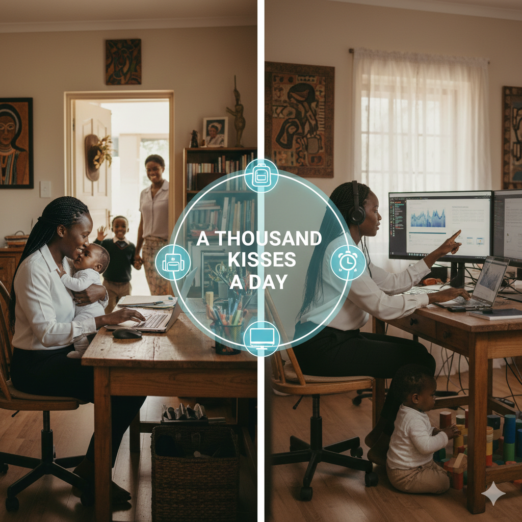 Chiedza, an IT consultant from South Africa, starts her morning in a less frenzied way – but her challenges are just as real. By 6:45 AM, her household is buzzing. She bathes her toddler, ensures her 7-year-old is ready for school, and by 8:00 AM she’s online at her home office (a corner of her living room) while a nanny cares for the little one. Working 100% remotely, Chiedza considers herself fortunate: “I get to take my son to school and still be there for lunchtime,” she says. During breaks, she sneaks in cuddles with the baby and aims for “a thousand kisses a day.”